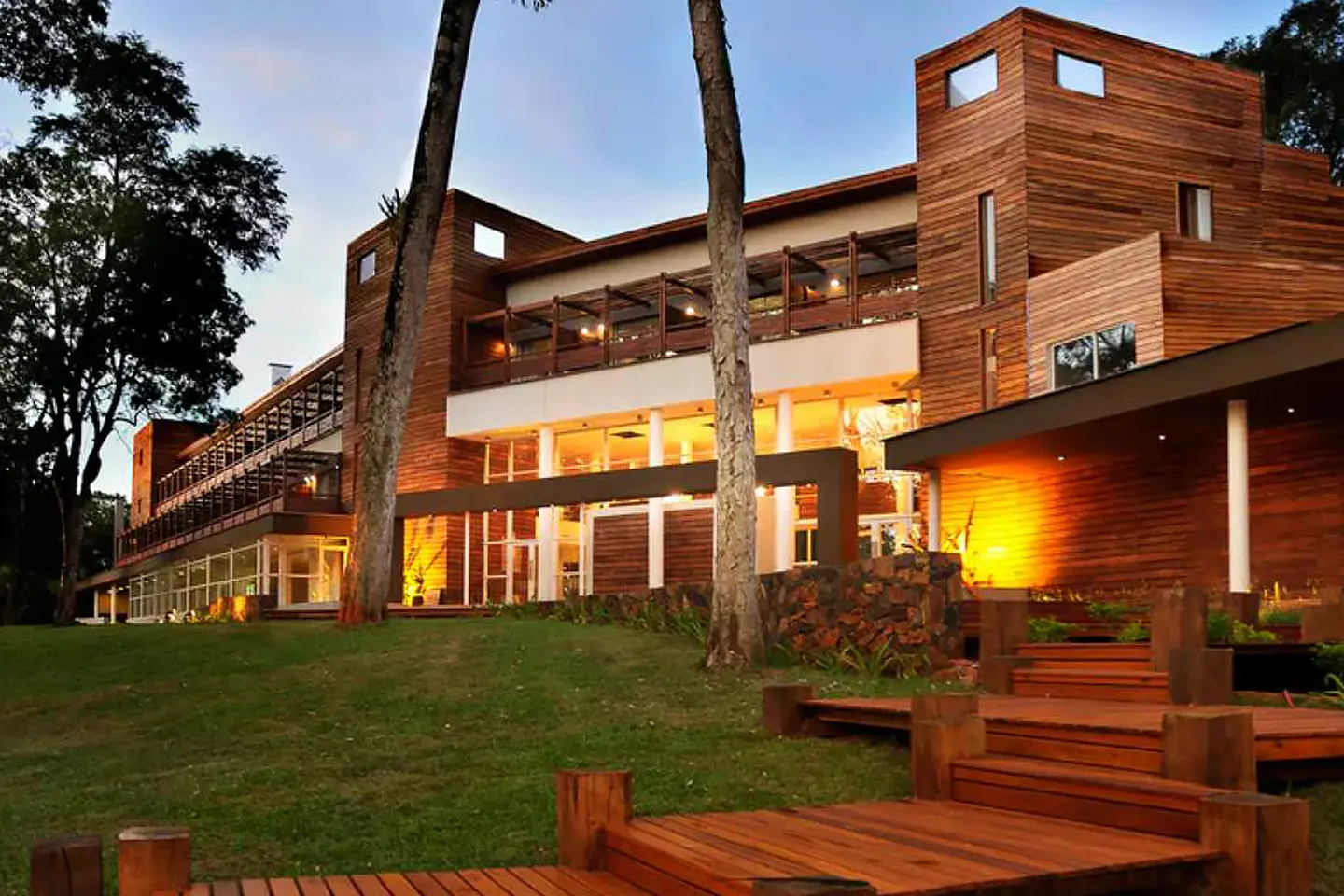 Rodeado de amplios jardines y en un entorno natural muy tranquilo, el Gran Hotel Tourbillon ofrece una experiencia ideal para quienes buscan descansar y disfrutar de la selva misionera con comodidad. Su estilo combina madera, piedra y detalles regionales que le dan un aire cálido y bien integrado al paisaje.